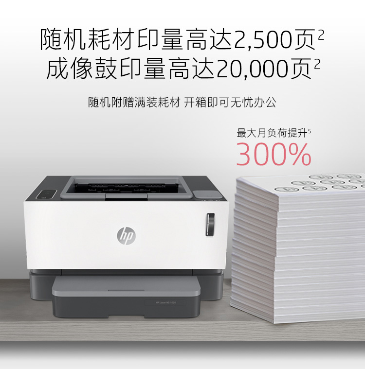 惠普(HP)创系列NS1020c智能闪充大粉仓激光打印机 1020plus升级款半容装 15秒充粉单打成本5分钱