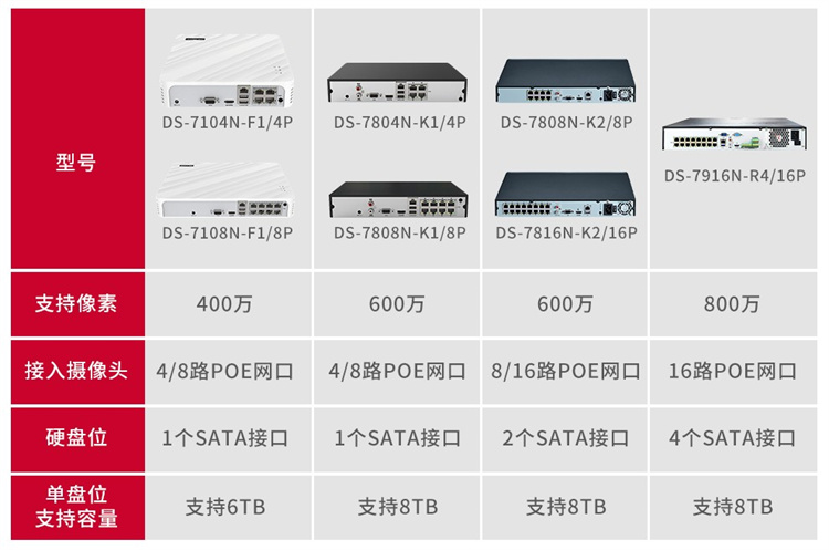 海康威视 DS-7804N-K1/4P 海康威视网络监控硬盘录像机4路POE网口 不带硬盘