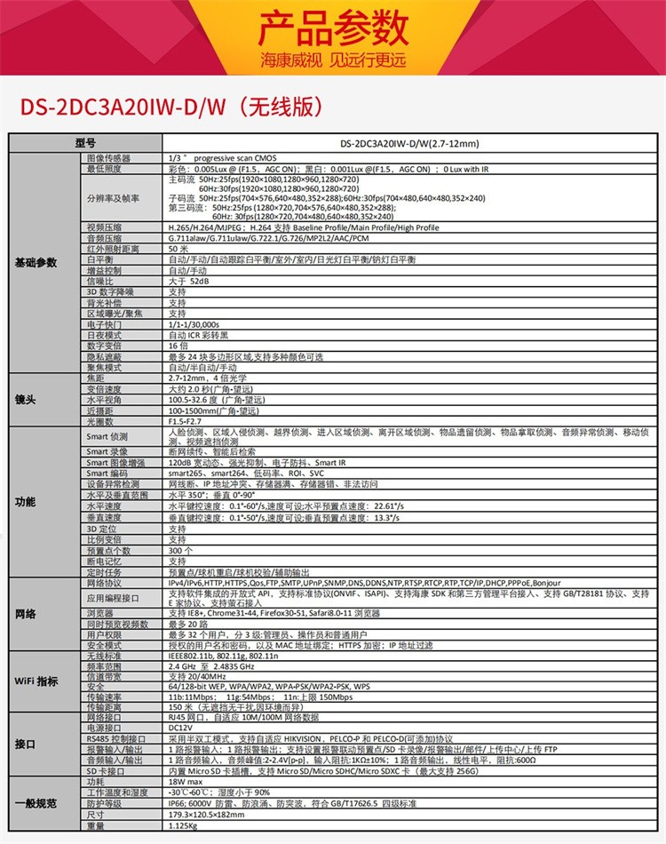海康威视 DS-2DC3A20IW-D/W(无线版)视频监控设备 海康威视云台球机室外高清红外摄像机200球机监控摄像头支持TF卡
